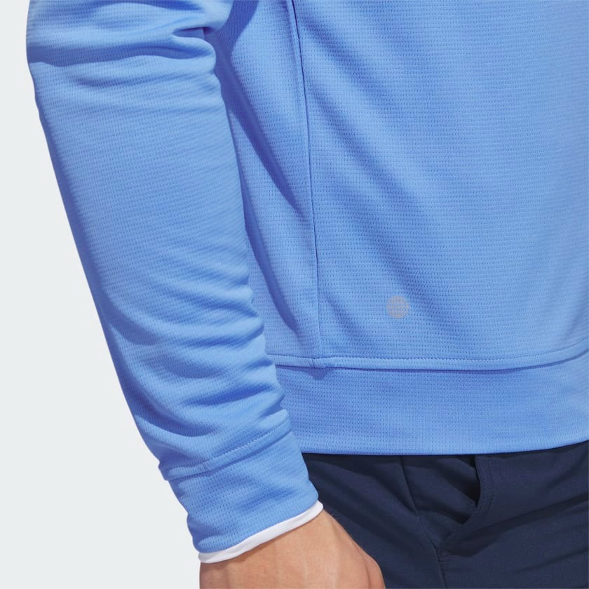 Chilly weather calls for a lightweight layer. This adidas golf pullover is made of soft knit for comfort on the course. Moisture-absorbing AEROREADY keeps you dry, and built-in UV coverage lets you play with confidence on sunny days.