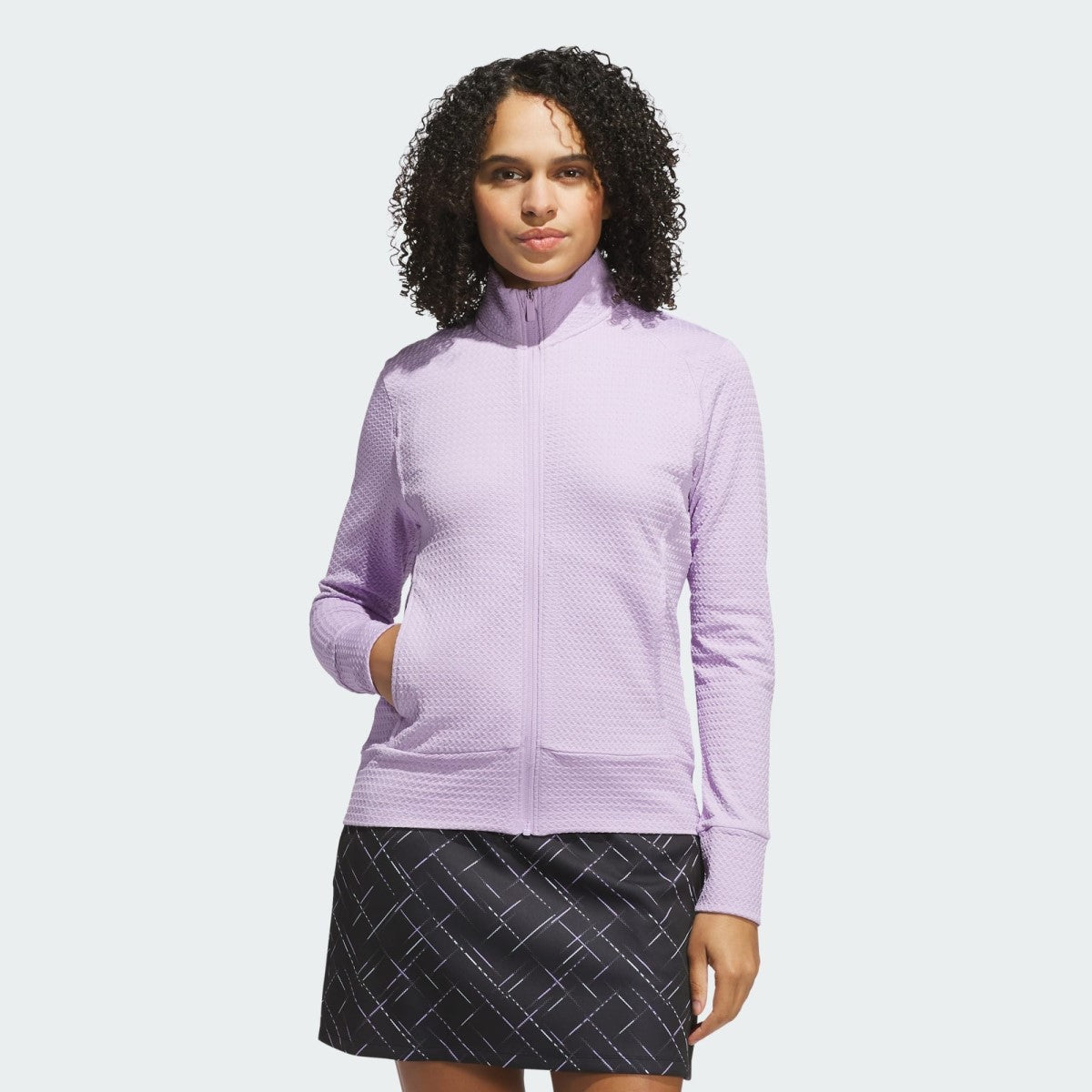 Experience the perfect blend of performance and style with this women's Ultimate365 texture jacket. Offering a regular fit, knitted from 96% recycled polyester with 4% elastane for a stretchy, green option on the golf course. Features include a badge of sport heat seal and two front zip pockets for practicality.