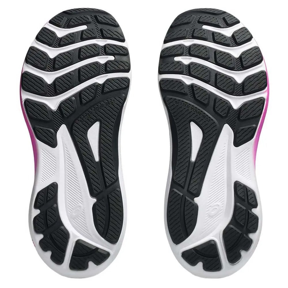 A kid's-specific last and a size checker on the sockliner help to accommodate growing feet. Additionally, the medial forefoot wrap-up outsole and toe rubber stitch are designed to improve durability.