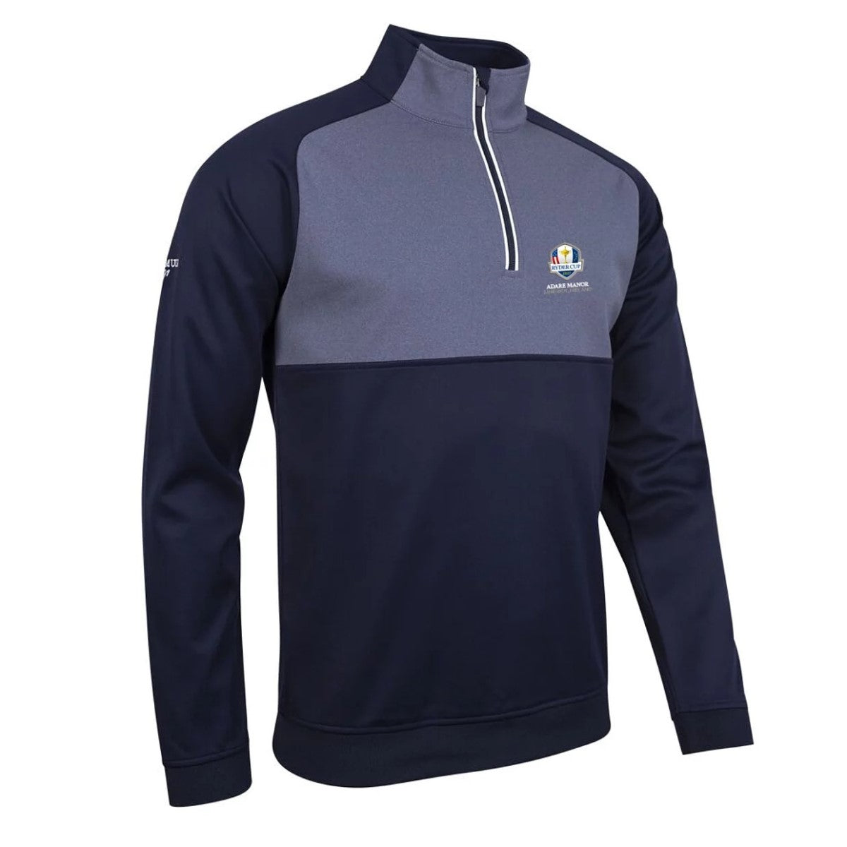 Reflecting the vivid contrasts of Oran’s coastal light, this bold midlayer pairs dynamic colour blocking with soft thermal fabric. Recycled fabric offers eco-conscious stretch and warmth, while a water-repellent finish and rib cuffs enhance protection. Details like an embossed zip, Storm Bloc® embroidery, and contrast piping nod to Glenmuir’s technical heritage, ideal for confident swings in cool weather.
