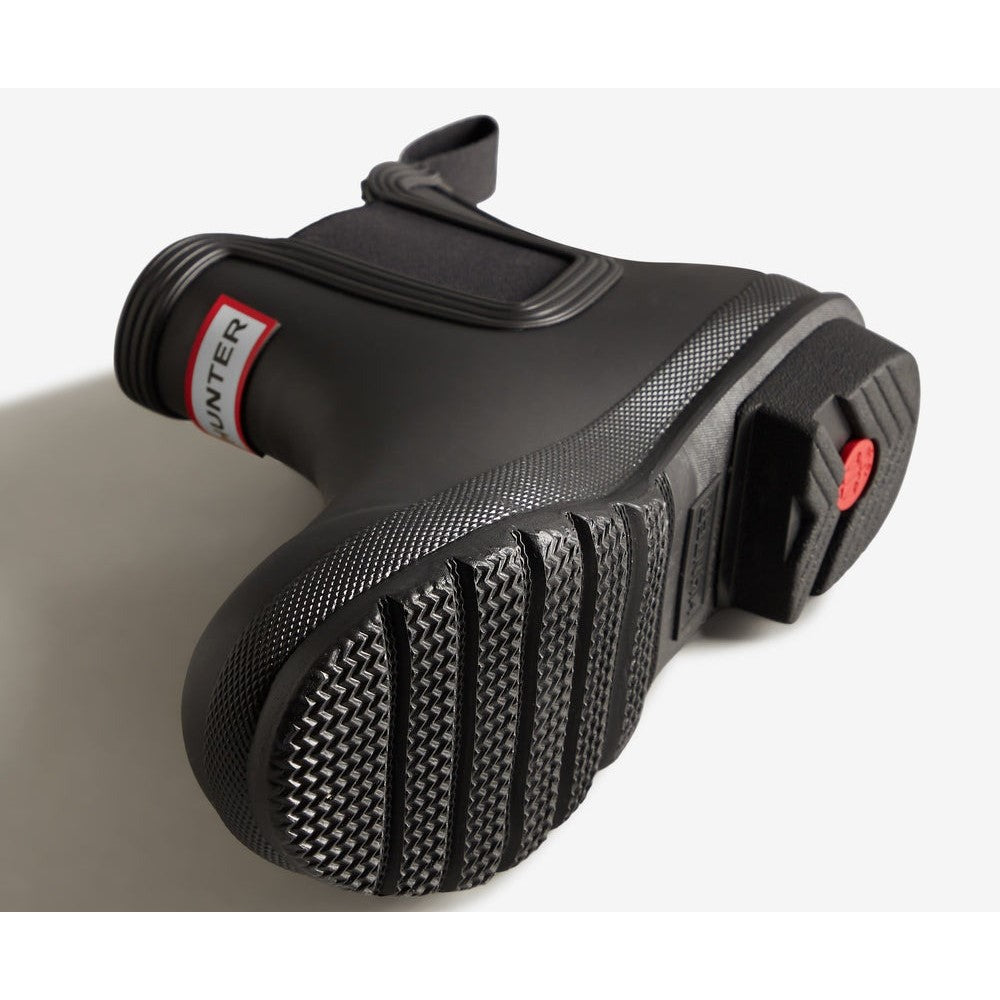 Retaining the iconic features of a traditional Chelsea, it features elasticated-gussets and has a nylon pull-tab to make stepping into the boot easy. In a classic black matte, these men's waterproof Chelsea's are a wet weather wardrobe essential. It is recommend that all Hunter Chelsea boots be worn with Hunter Chelsea socks, which have been technically designed to protect the wearer's skin from contact with rubber in specific areas.