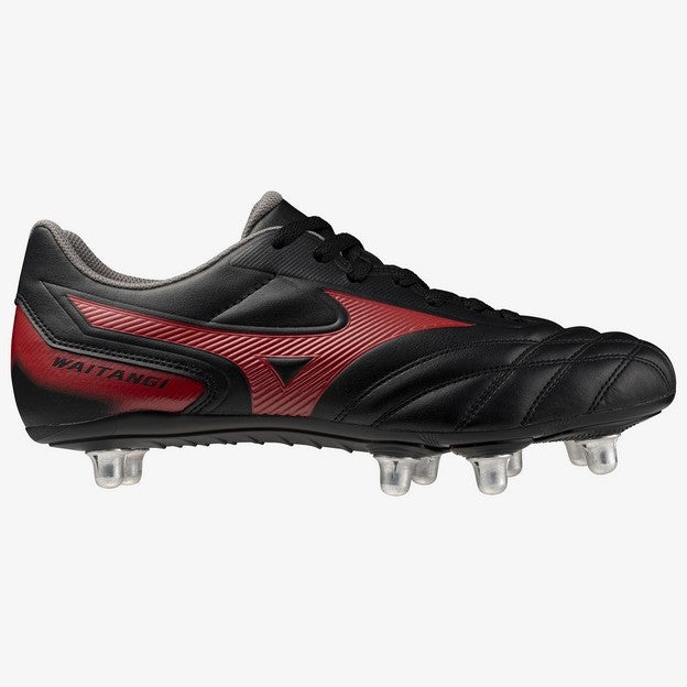 Built for the Forwards on the rugby pitch, the Waitangi II CL features diagonal flex grooves for improved forefoot flexibility in scrum movements, a 6x2 screw-in stud pattern for optimal traction on soft ground surfaces, a lightweight synthetic upper, and a Super Wide last fitting.